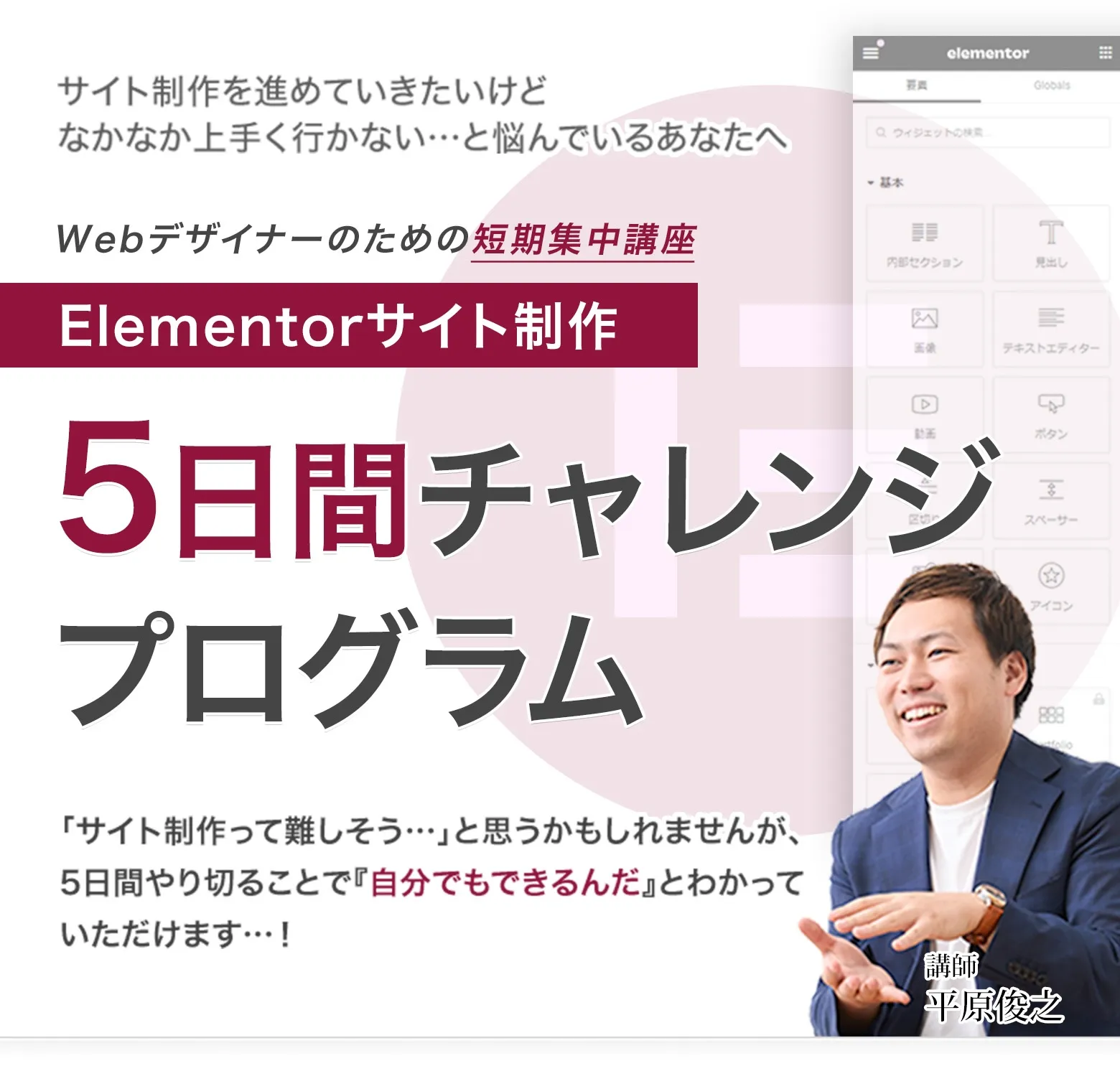 お名前とメールアドレスを入力して Elementor5日間チャレンジへの参加準備を進めてください ▼▼▼